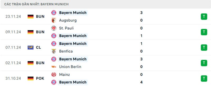 Bayern Munich đã giành chiến thắng trong 6 trận đấu liên tiếp trên mọi đấu trường, thậm chí không để thủng lưới một bàn nào trong chuỗi đó. Họ đang thể hiện phong độ ấn tượng và được kỳ vọng sẽ vượt trội hơn so với một PSG có phong độ trung bình.