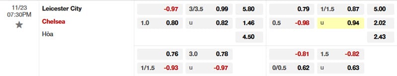 Tỷ lệ kèo Leicester vs Chelsea