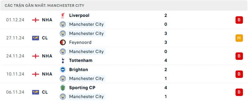 Manchester City, dưới sự dẫn dắt của Pep Guardiola, đang trải qua một cơn khủng hoảng phong độ. Họ vừa thất bại 0-2 trước Liverpool, một trận đấu mà City đã thi đấu không tốt và may mắn không bị thua nhiều hơn. Hiện The Cityzens tụt lại 11 điểm so với đội đầu bảng Liverpool. Đáng chú ý, đây là lần đầu tiên kể từ năm 2008, đội bóng này để thua bốn trận liên tiếp ở Premier League.