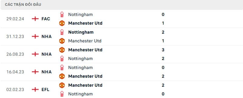 Lịch sử đối đầu cũng không ủng hộ Nottingham Forest, khi họ chỉ thắng 1 trong 14 lần gặp Manchester United (hòa 1, thua 12). Lần gần nhất họ giành chiến thắng tại Old Trafford đã từ năm 1994, với 7 thất bại liên tiếp kể từ đó. Điều này tạo ra một áp lực tâm lý lớn cho Forest, khi họ cần phải vượt qua rào cản này để có thể giành điểm.